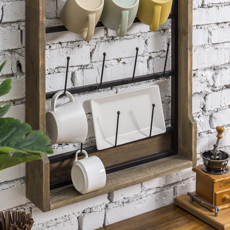 Why keep your coffee mugs tucked away behind some cupboard door when showcase all your fun, unique and elegant coffee cups in one easy to access place. This wooden coffee cup organizer rack provides 16 hooks for hanging coffee mugs and cups and is a great way to keep coffee and tea drinking supplies organized, or as a decorative way to display your collectible mugs. Easy to mount to flat wall surfaces with appropriate hardware (Mounting hardware not included), this mug storage rack makes for an excellent addition to your home kitchen, office break room, café or coffee shop.