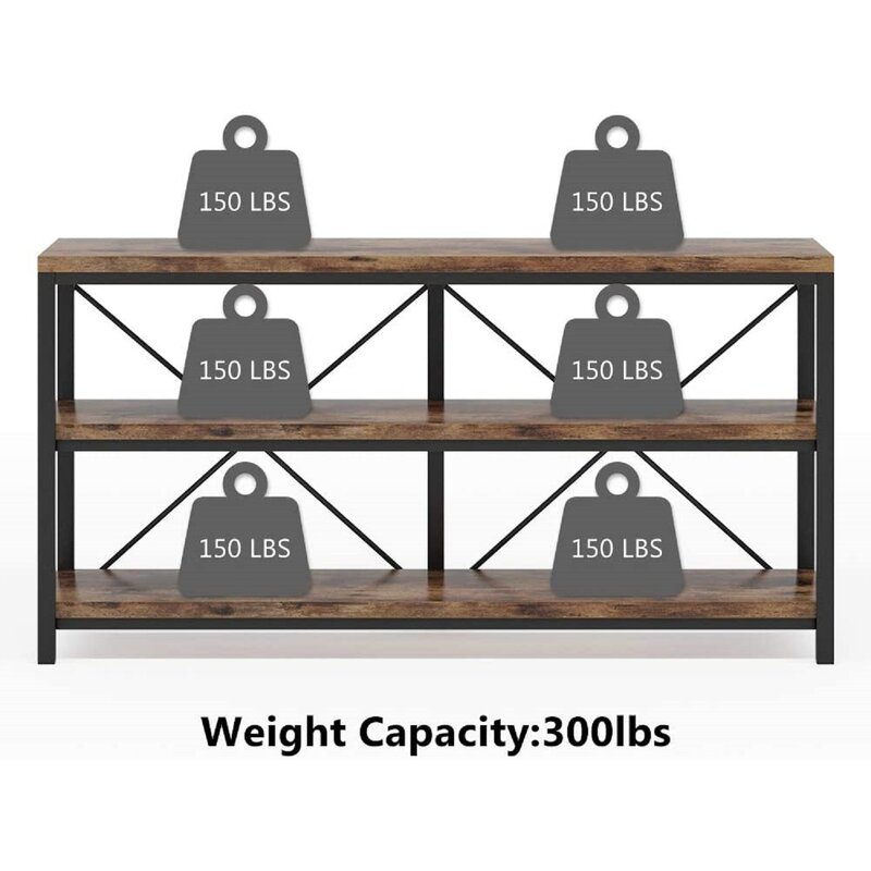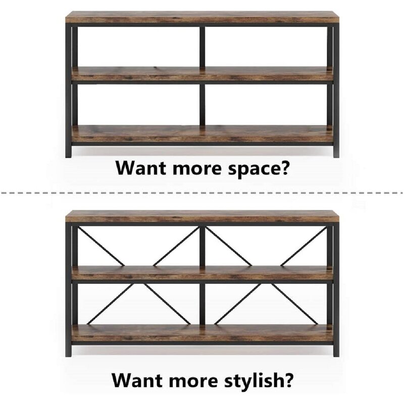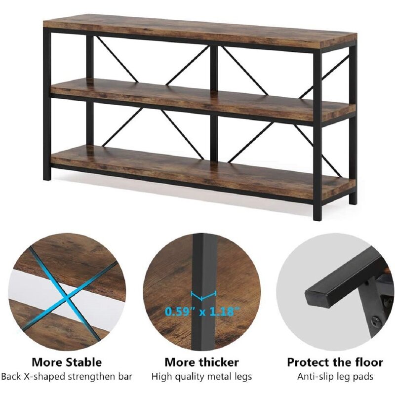 Narrow table, you can use this as a sofa table behind your couch, also it’s a perfect entryway console table in a corner or a tv table in your living room. The industrial design gives off a rustic vibe and a heavy feeling that matches most American furniture. At the same time, the 3 tiers of open shelves are perfect for stacking go-to books, displaying framed photos, or other decor items.
