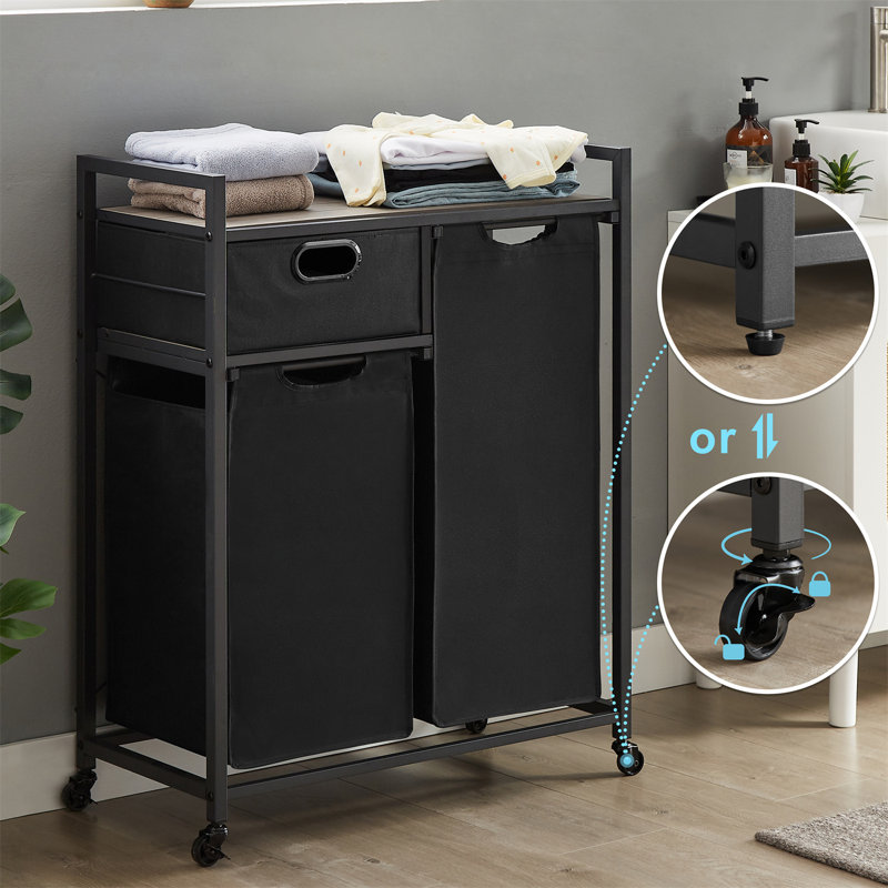 ã€Pull-out Detachable Laundry Bags】:2 bags bottom supported by cardboard to prevent sagging, thanks to the hook and loop fasteners, you can easily pull out the bags or remove them to take to the washing machine.