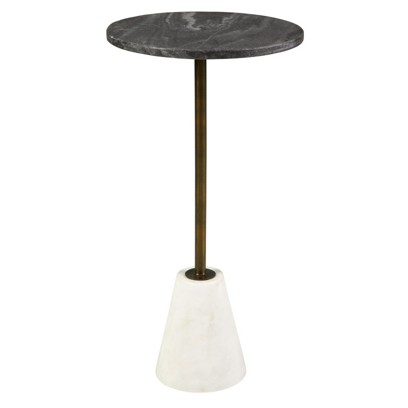 Marvel at the marbled mastery of this high-end accent table. Made of beautiful white marble, the round tabletop is supported by a sturdy goldtone pedestal on a black marble base. With a sleek, tapered profile, this space-saving table is striking from every angle.