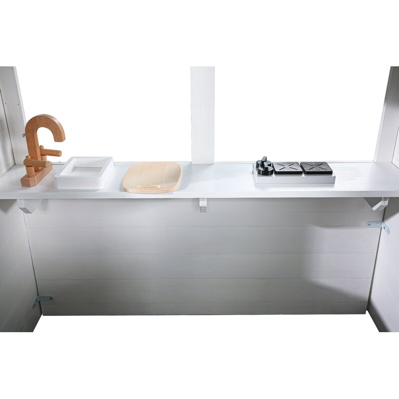 This Playhouse will create hours of sensory play while also helping your little one explore the world of imagination. The beautiful white and black farmhouse design will create a stunning addition to any backyard. The Zahara Playhouse includes a built-in kitchen, beautiful wooden play food and cedar window boxes to create your own potted garden.