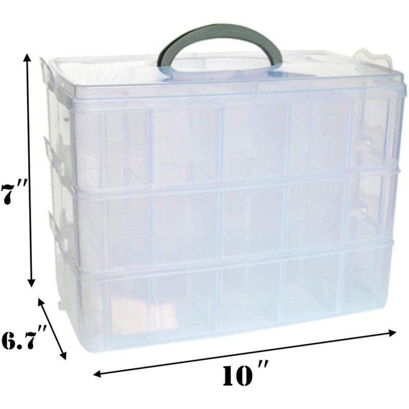 Introducing the ultimate solution for organizing all your craft supplies, toys, and accessories! Our craft storage organizer is perfect for anyone looking to declutter and organize their space. With 3 tiers and 30 individual adjustable compartments, you can easily customize the size of each section to fit any size toy or accessory. This versatile storage solution is perfect for storing a variety of items, including sewing and bead supplies, jewelry, lego pieces, figurines, scrapbooking supplies, and so much more. You can even use it to store fishing tackles, screws, nuts & bolts, and other small hardware items or utensils. The snap-lock trays ensure that your supplies are safely stored and transported, with latches on each side to securely hold each level of the containers. Plus, the lightweight design and convenient handle make it easy to take your supplies with you wherever you go. Never again lose track of your items – the transparent plastic design allows you to easily locate whatever you need. Our stackable organizer case is the perfect solution for all your home organization needs.