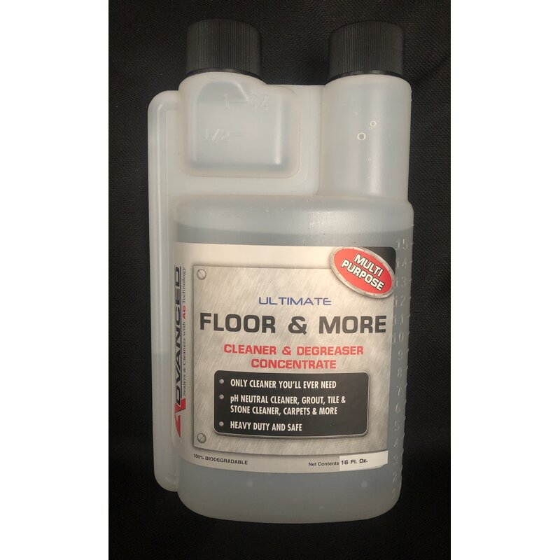 Ultimate Floor & More Cleaner- The only cleaner you’ll ever need; new AC Technology gives you a heavy-duty, environmentally safe true multi-purpose cleaner and degreaser. New AC Technology brings you a pH neutral cleaner, grout & tile cleaner, a stone cleaner, a carpet spot cleaner, and a degreaser all in one! It’s a non-caustic, non-acidic, “All Natural†cleaner and degreaser that effectively removes and breaks down oil and grease without damaging floors, natural stone, appliances, furniture, carpet, fabric, paint, wood, metals, glass, countertops, showers, tubs, concrete, trash cans and more.