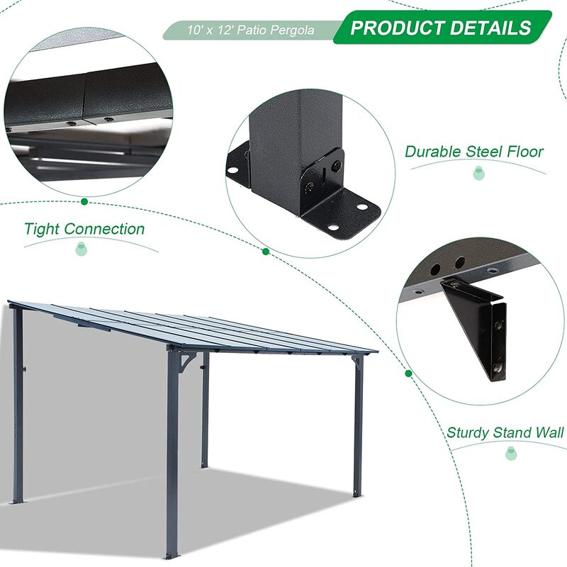 Durable frame: All corners are supported by a triangle frame that pergola will afford harsh weather like heavy wind and snow