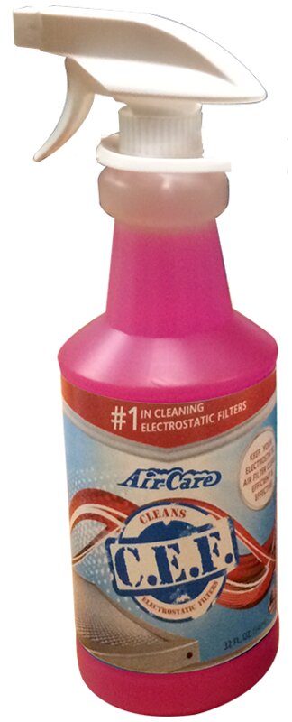 C.E.F. Air-Care electrostatic air filter cleaner. Spray C.E.F. on both sides of your filter, rise with water, allow to dry and your filter is clean for the next 30 days.