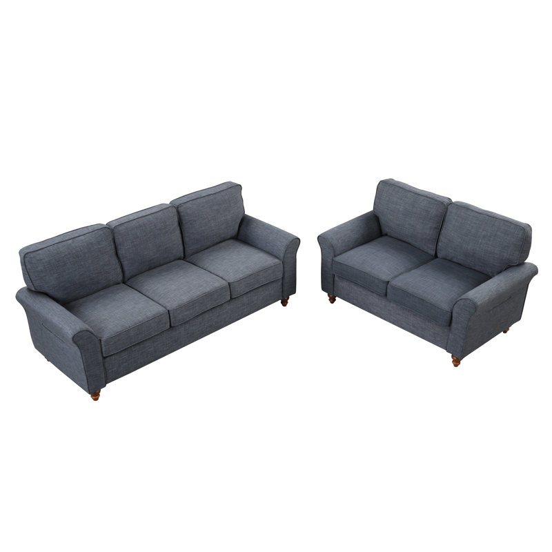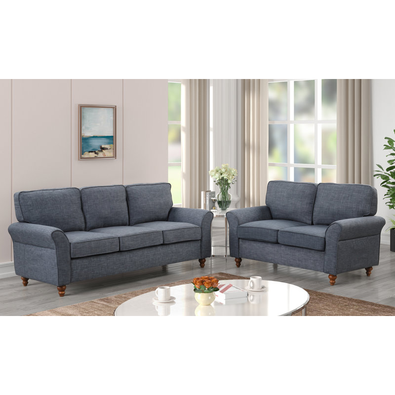 Designed to elevate your living space with elegance and style. This exquisite set features a plush sofa and a cozy loveseat, both adorned with classic rolled arms for added comfort and a touch of sophistication.Upholstered in high-quality, easy-to-clean fabric, this set is available in a variety of colors, patterns, and textures, ensuring the perfect match for your existing décor. The generously padded cushions provide exceptional comfort and support, crafted with a blend of high-density foam or down fill.Built to last, the sturdy frame of both the sofa and loveseat is constructed from solid hardwood or top-grade engineered wood, offering durability and stability. This coordinated set creates a harmonious and inviting atmosphere in any living room, making it an ideal choice for those seeking a perfect blend of style and function.Enhance your living room experience with the Fabric Roll Arm Cushion 2-Piece Set, a timeless furniture collection that promises to impress. Don’t miss out on this luxurious addition to your home, order yours today!