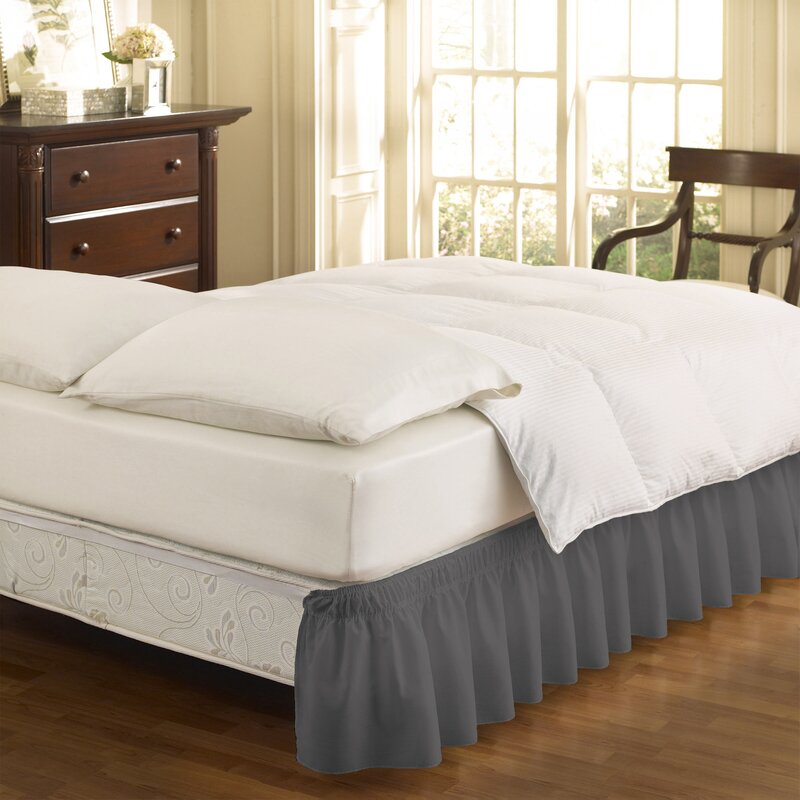 Changing your bed skirt has never been so quick and easy! This beautiful bed skirt adds a perfect touch of charm and finished style, without having to lift a heavy mattress. No more back-breaking lifting. The easy-stretch design allows it to slip effortlessly over your mattress and around your box spring. The Alcott Hill® bed skirt’s innovative design and versatile style are adjusted to fit any bed size. Hide unsightly box springs and bed frames with the delicate eyelet or classic solid style of your choice. Poly/Cotton Blend. Machine washable.