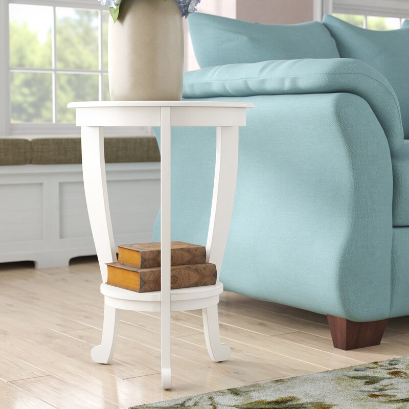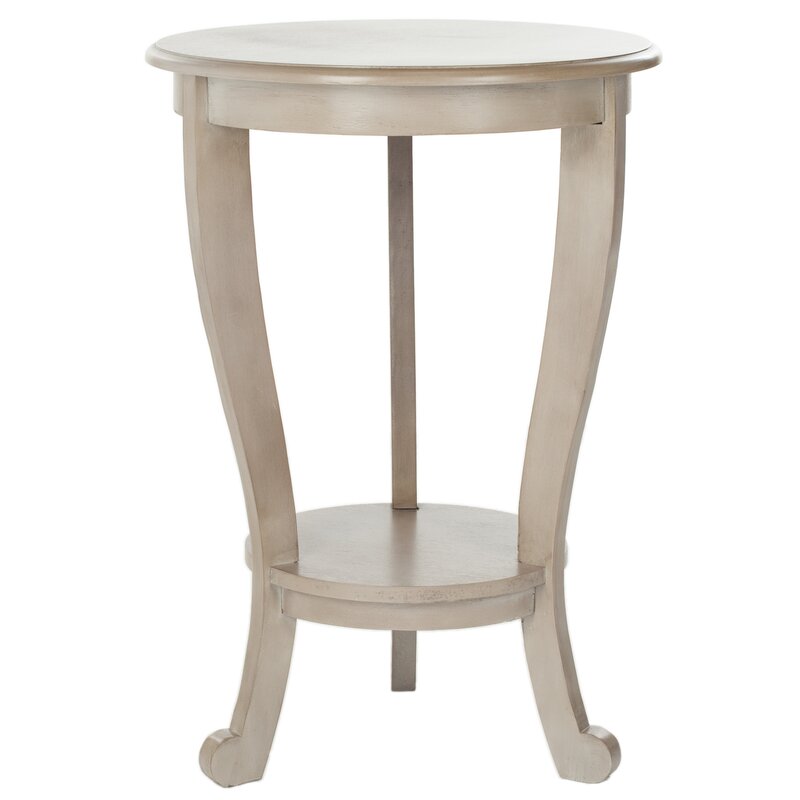 Whether using it as the perfect perch for a reading lamp or as the hub for living room electronics, end tables are a staple in our homes. Take this one for example: defined by sloping curves and a circular silhouette, this piece lends instant traditional appeal to your arrangement. Its pinewood construction features a bottom shelf, providing a place to tuck away well-thumbed novels or display a photograph, while a neutral tone allows it to blend with a variety of color schemes.