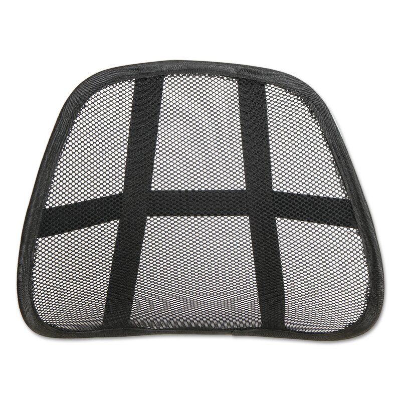Ergonomically designed stretched mesh backrest supports the lower back. Contoured shape and curves to keep the back in alignment. Breathable mesh fabric keeps the back cool and supported. Adjustable elastic straps secure backrest in place. Great with office chairs, car seats, or in the home.