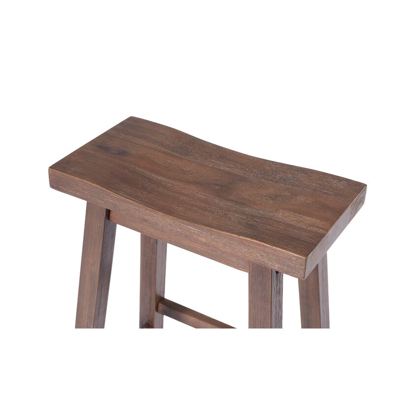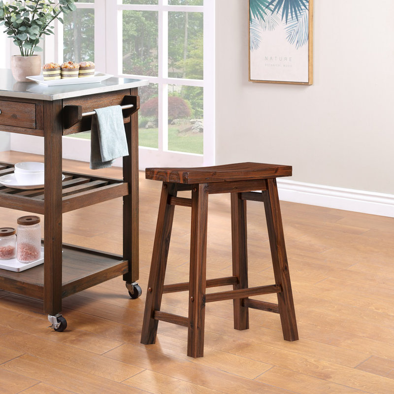 Bring attractive rustic style to your kitchen island with the Alessandro Saddle Counter or Bar Stool. Our Alessandro saddle stool is made from solid rubberwood. This environmentally friendly wood is prized for its hardiness and attractive grain. We use a multistep wire-brush finish which enhances the natural beauty of the wood even more. It’s built for long-lasting stability and comfort, thanks to a wide, curved saddle seat and built-in footrests. Choose from our selection of available finish options: Barnwood, Chestnut, and Storm Gray. Seat height available in dining (18 inches), counter (24 inches), and bar (29 inches).