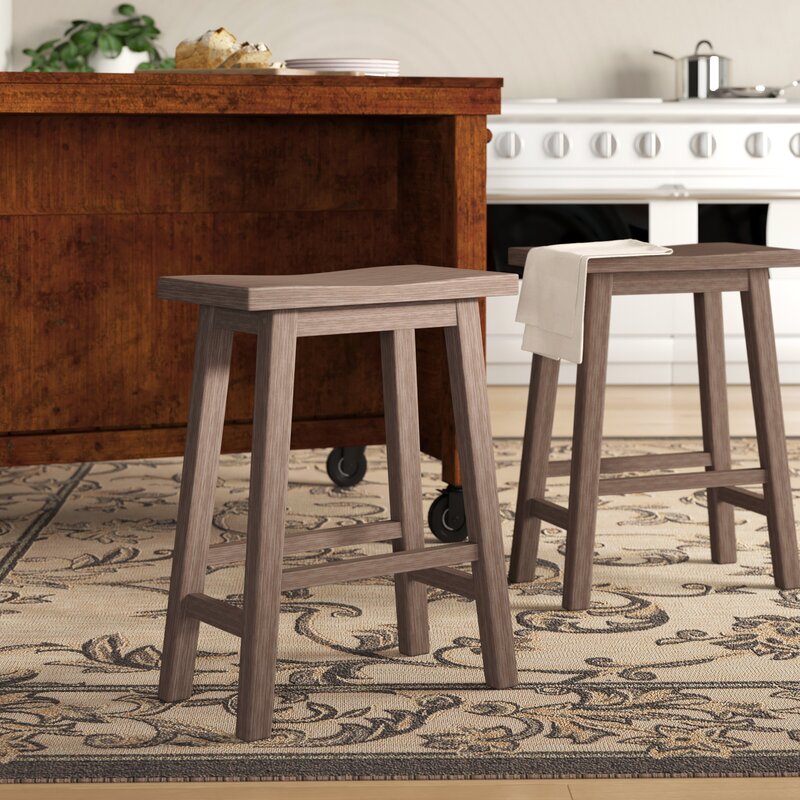 I got 2 of these stools in the Driftwood Wire-Brush color. They are absolutely beautiful and the 24” tall option tucks neatly underneath the matching table! I also have the matching bench on the other side and I love this combination. They are very sturdy! My husband weighs over 250 lbs and sits on these with no problems. I put them together by myself in 15 min. Don’t use power tools. Just hand tighten. The legs have white plastic protectors attached so it won’t scratch your floor. Just get it. You deserve it!