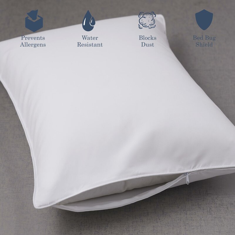 Sleep deeper with this Allergen Barrier pillow protector. With a special tightly woven soft touch fabric, this essential layer prevents allergens and blocks dust mites and bed bugs. The fabric also features a water-resistant seal and a zipper closure making it easy to add to any pillow and easy to remove for machine washing. This pillow protector not only enhances your pillow, but it also extends the life by keeping it clean and protected.