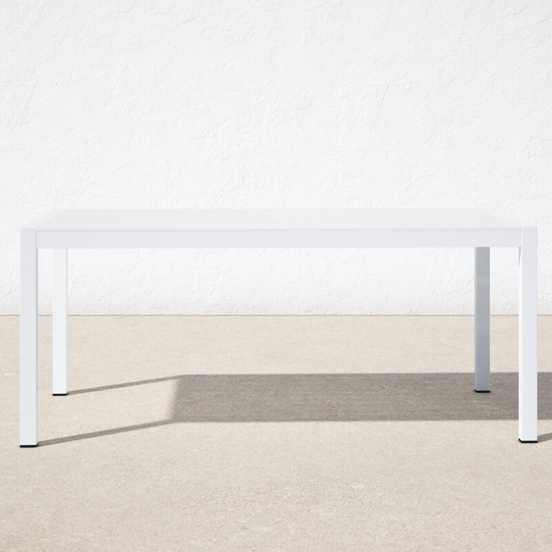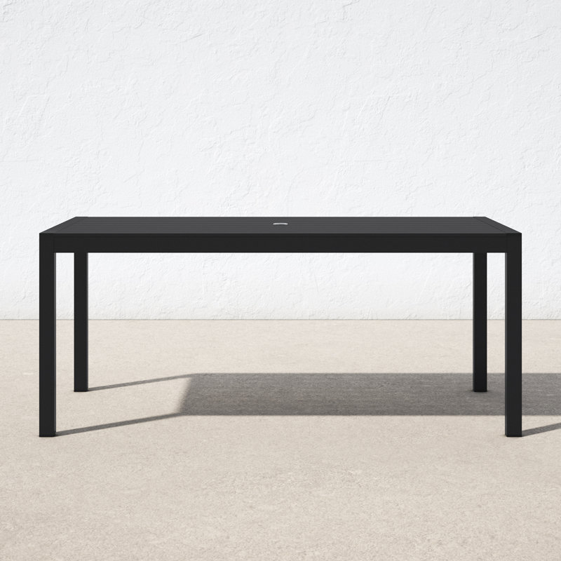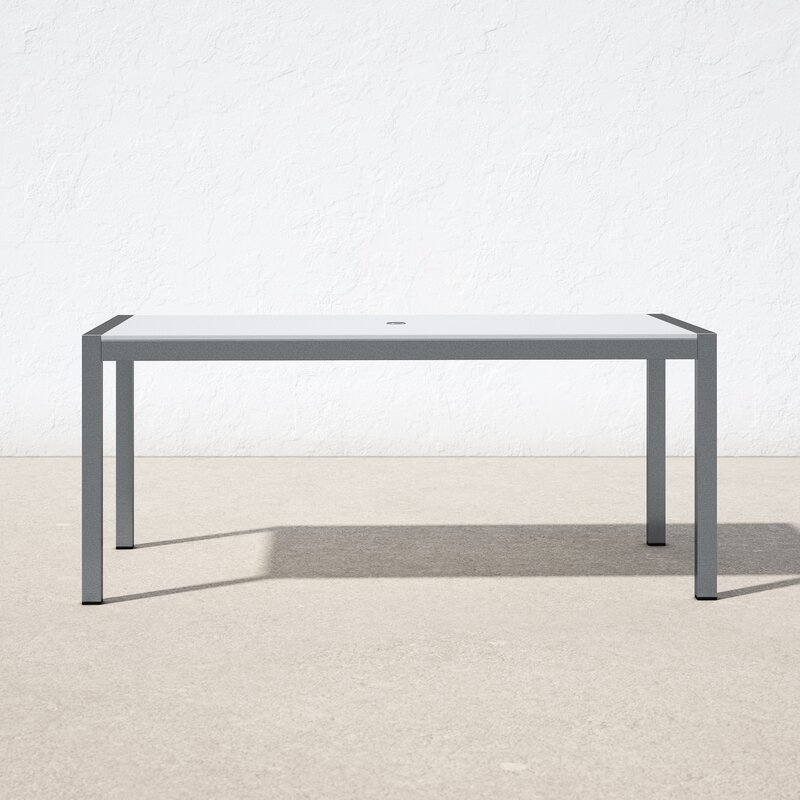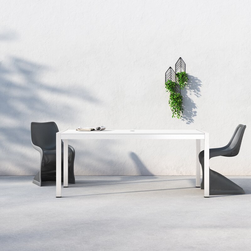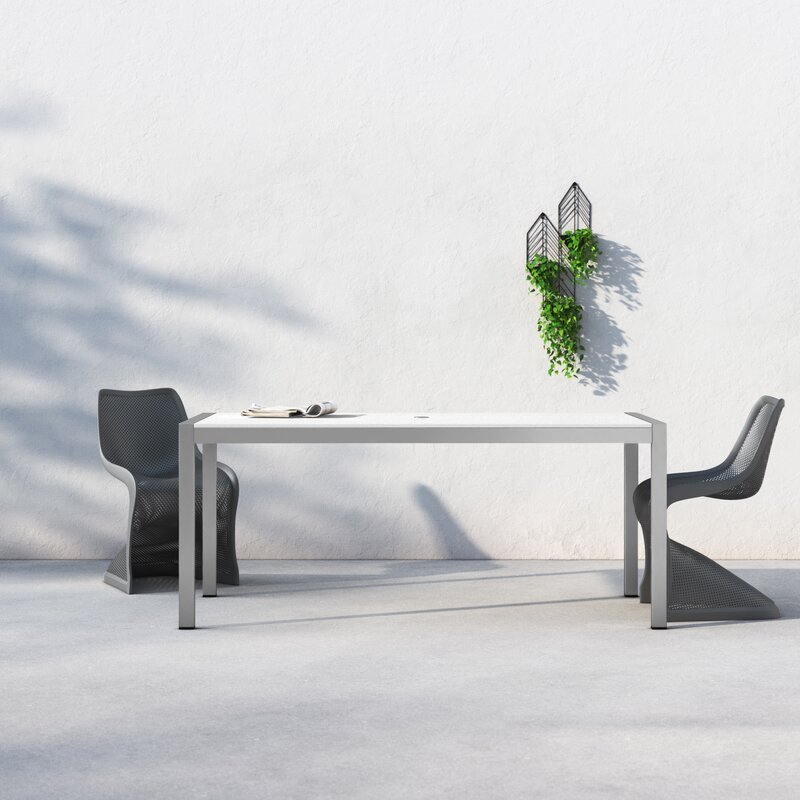 Sleek modern dining table that is durable for outdoor use. Up to 6 chairs.