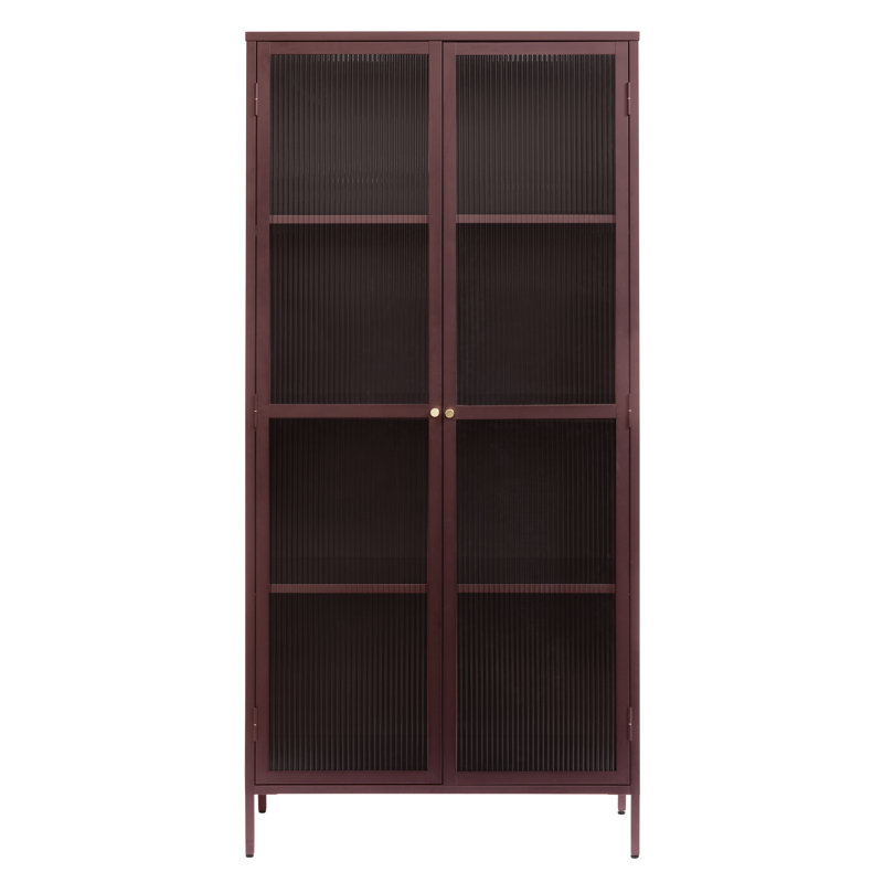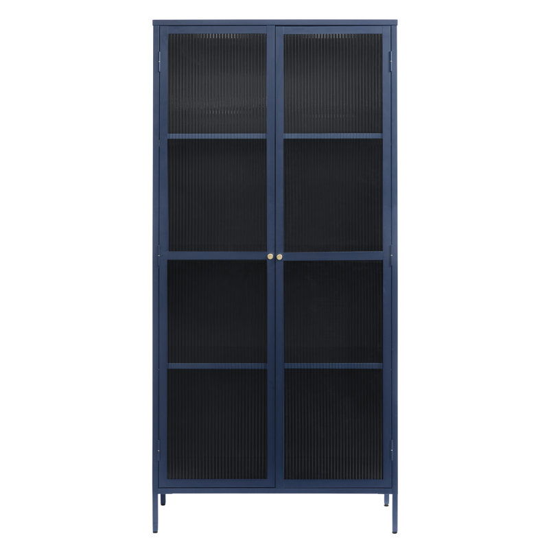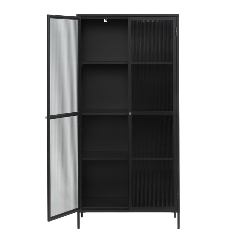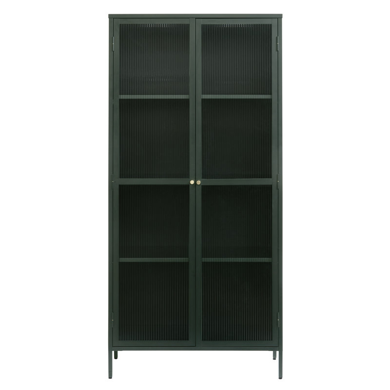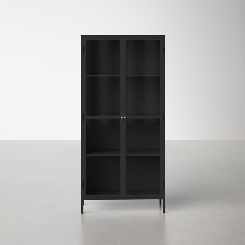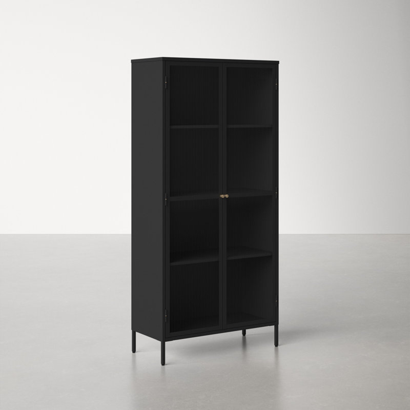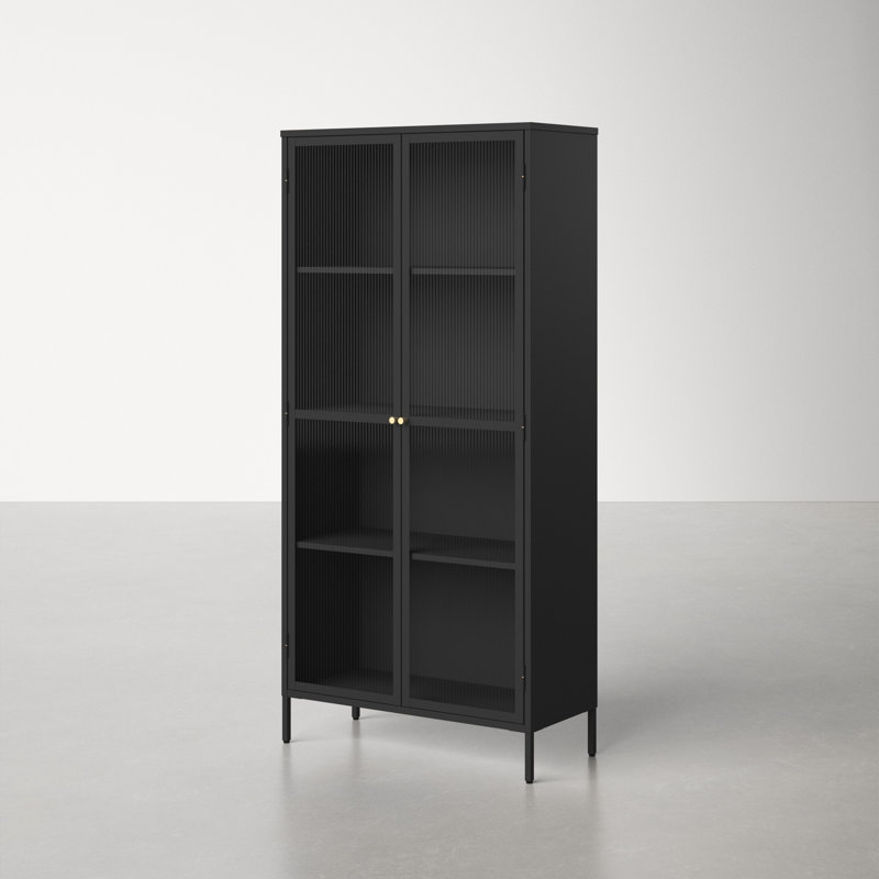 Enjoy a more refined take on the modern design aesthetic with this metal display cabinet. This metal two door cabinet is designed with two glass panel door fronts, four shelves and simple metal framework, making it the perfect home for your favorite pottery, books and other collected curiosities.