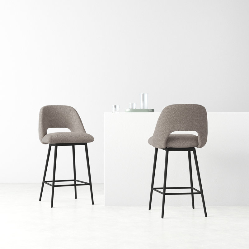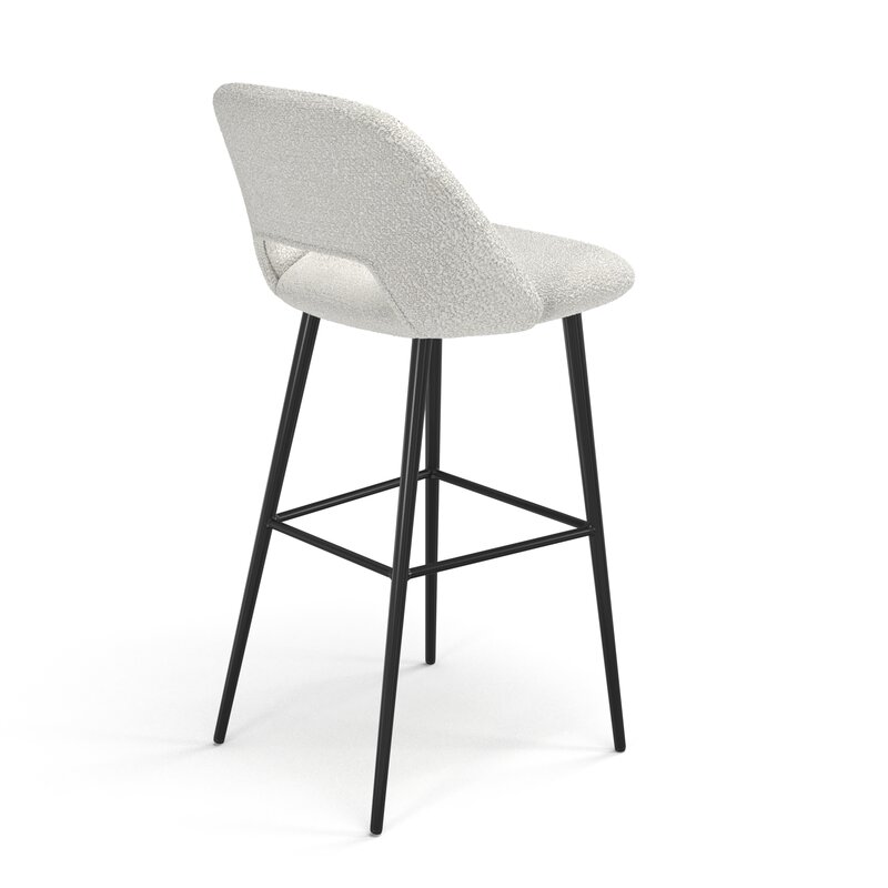 Searching for just the right stools to update your dining space. Take a look at this set. Offering an on-trend look with a sophisticated modern touch, these stools have an eye-catching appeal that will soon become the focal point of your room. The slightly curved back is crafted on a plywood frame with high-density foam padding and a beautiful white boucle fabric. The durable steel legs with a black matte powder-coated finish offer a sturdy foundation. Mixing materials and textures with an added element of comfort, these stools are the perfect blend of style and sophistication with true form and functionality.