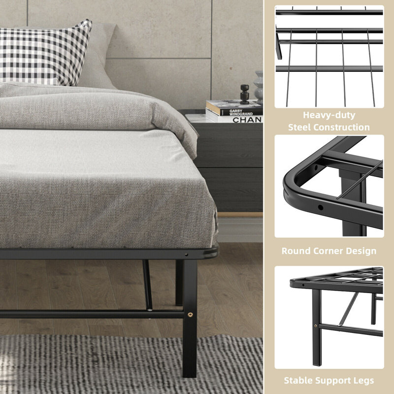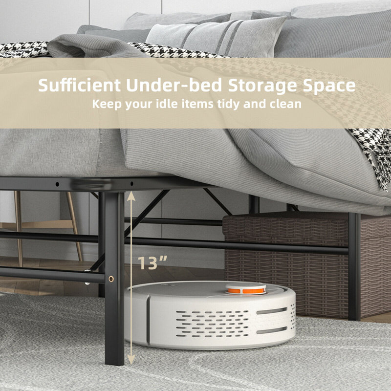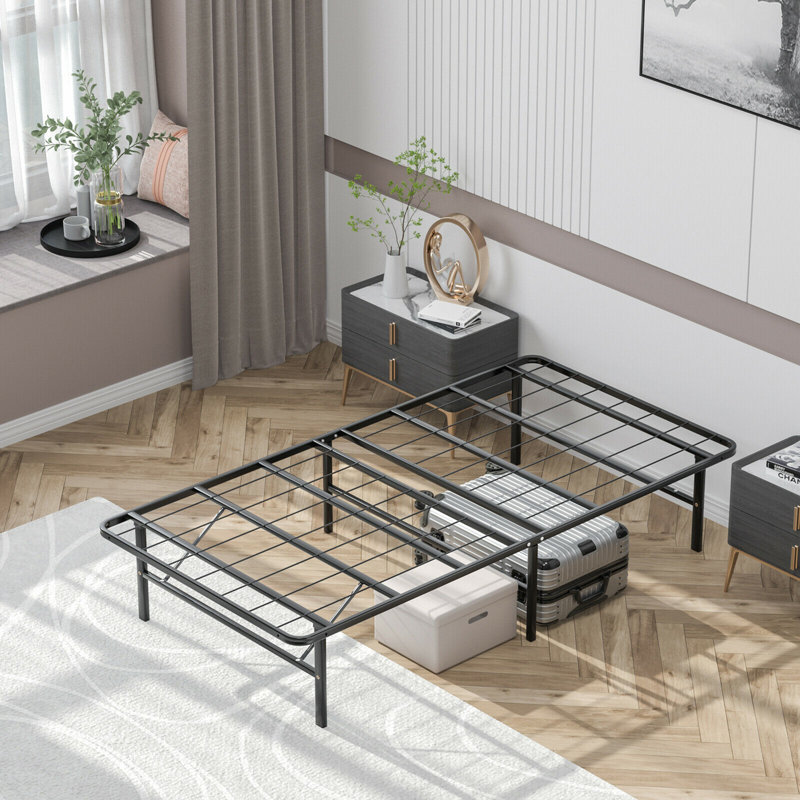If you are looking for a sturdy yet practical folding bed for your bedroom, our metal bed frame is a perfect choice that combines versatile use with a stylish appearance. Made of heavy-duty steel slats with a powder-coated finish, the folding bed ensures a rugged and durable structure for long-term use. Moreover, the bed frame only requires several steps to fold away, which s convenient for you to store it away in the corner or under the furniture. Designed with the idea of flexible storage, the under-bed space is spacious enough to manage boxes, luggage, and other items. Considering convenient use, our folding bed can be served as a spare bed in the bedroom, living room, study room, office, etc.