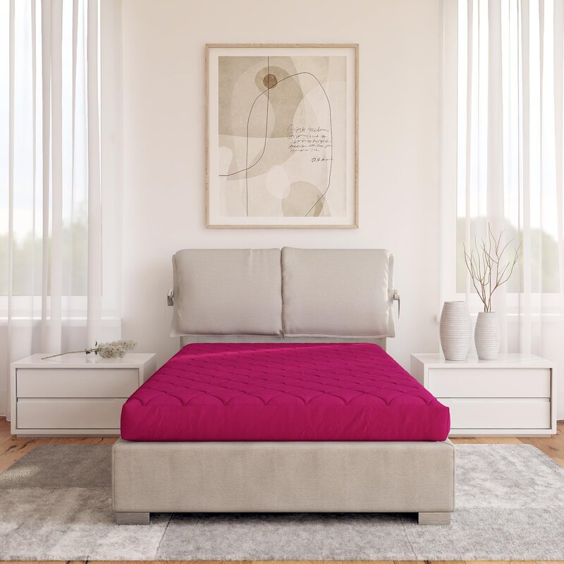 6″ thick mattress comprised of a polyester-knit quilted pattern cover and a Thermobonded high-density polyester-filled core for comfortable soft/medium support. The removable cover can be washed.