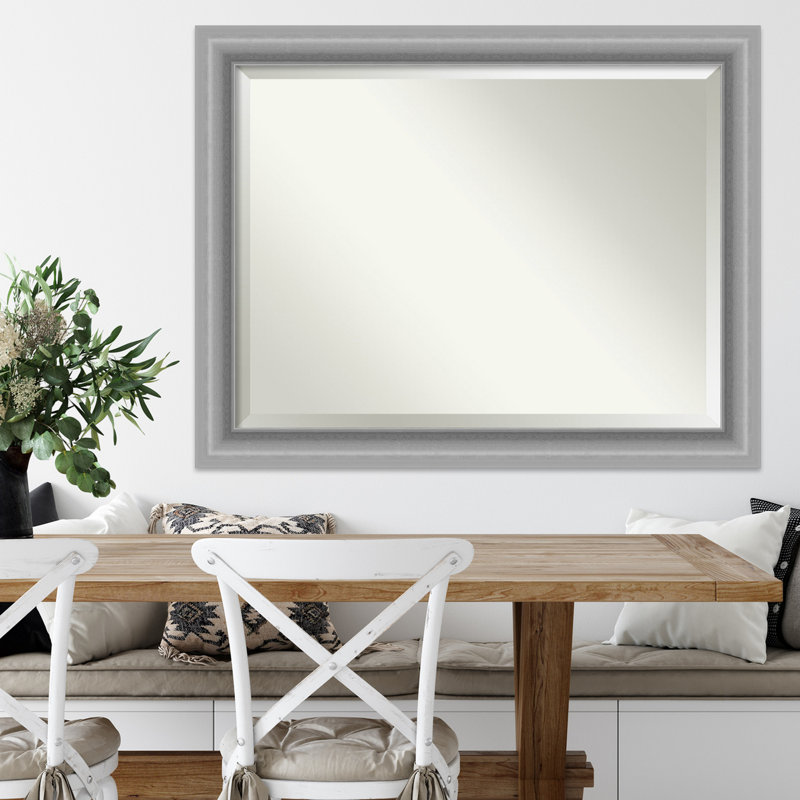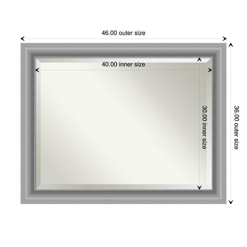 Give your home or office the finishing touch with this Beveled Wall Mirror framed with the Peak Polished Nickel frame. Individually made using traditional custom framing techniques, it has the quality you would expect from your local frame shop. It holds its value with premium finishing that can be appreciated up close. FRAME DETAILS: The Peak Polished Nickel 3.25″ Frame features a wide brushed silver frame with a metallic sheen finish. The outer edge has a smooth, satin finish. MIRROR DETAILS: Beveled premium glass mirror. PROTECTIVE BACKING: This wall mirror is finished with a solid surface backing to ensure stability and prevent moisture and dust buildup. HASSLE-FREE HANGING: All mirrors have durable hanging hardware attached to the back to allow for hanging vertically or horizontally. Hanging hooks and nails included. ASSEMBLED IN THE USA: Each piece is assembled to order in Madison, WI USA. FOR HOME OR COMMERCIAL USE: Because of our attention to detail and focus on artistry, architects, interior designers, and homeowners alike choose this mirror to create beautiful living spaces.