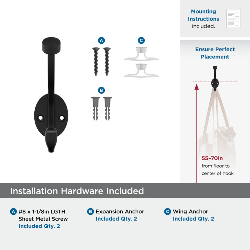 Perfect for hanging coats, bathrobes, towels, hats, purses or backpacks