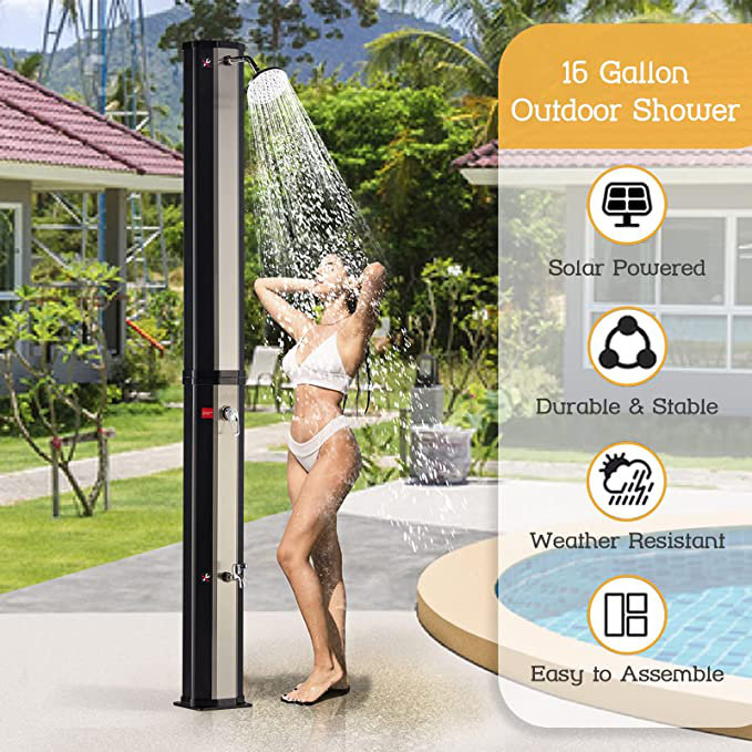 16 Gallon Large Water Tank: Simply connect the outdoor shower with a garden hose, let all the family members and pets can enjoy a refreshing shower.