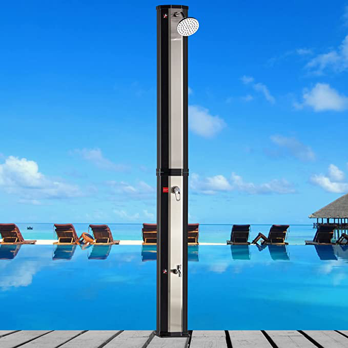 What could be nicer than taking a hot shower in your garden or next to your pool? The installation of a solar shower in the garden or around the pool is very simple and allows you to enjoy free warm water quickly. Solar showers heat the water thanks to solar energy and do not consume electricity. They are installed in the garden, on the terrace or near the pool and they only need to be connected to a hose with access to water. Thanks to the additional protective hood , the summer shower is also protected in cold seasons , so you do n’t have to worry about bad weather conditions such as rain , snow , hail or dirt .