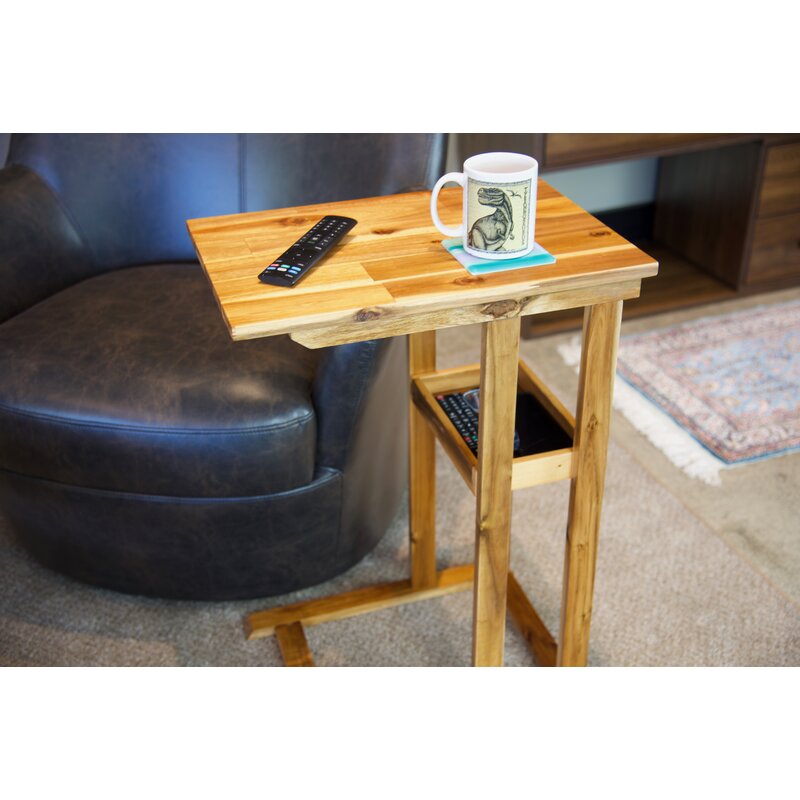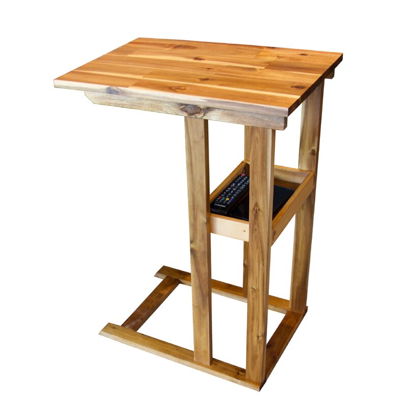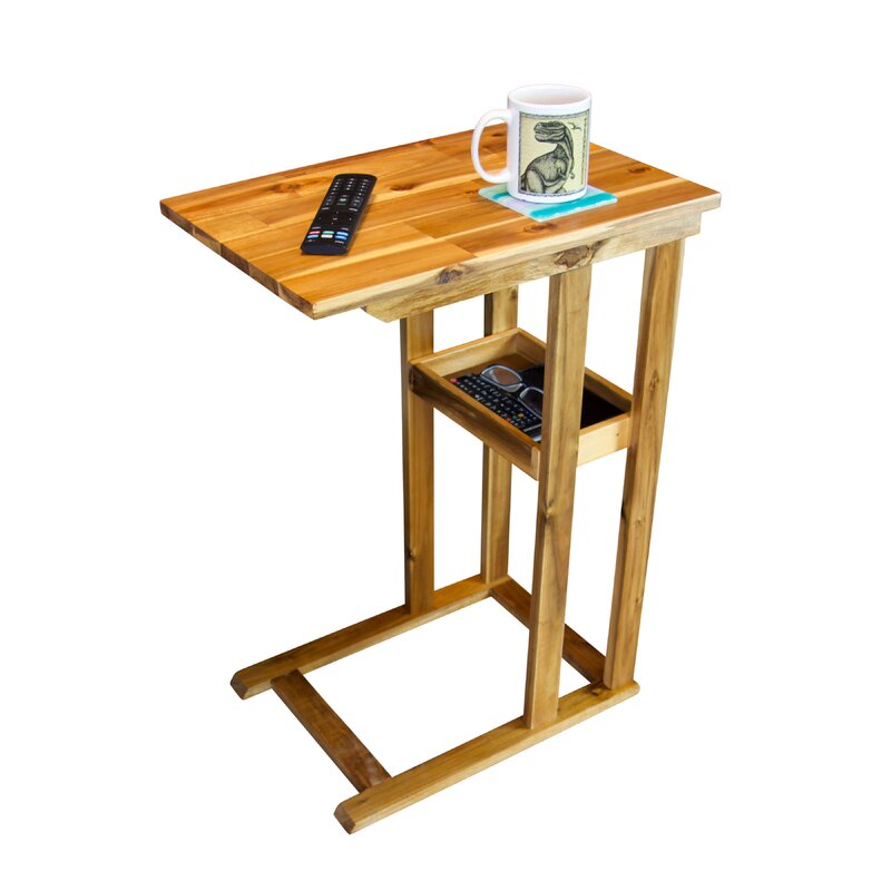 Save some space in your living room with this rustic, clean-lined tray table. Its open frame is crafted from solid acacia wood with a weathered finish, and it showcases a C-shaped silhouette that easily tucks underneath your sofa or armchair. We love that you can use the surface for a morning cup of coffee or for catching up on some work-from-home projects. This table has 24″ under the tabletop, so it slides over the arms of most upholstery. Plus, it comes with a built-in tray for glasses, remotes, and other essentials. Bonus feature: Its water-resistant design is sure to stand up to the occasional spill or splash. Supports up to 30 lbs.
