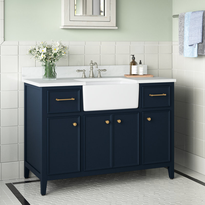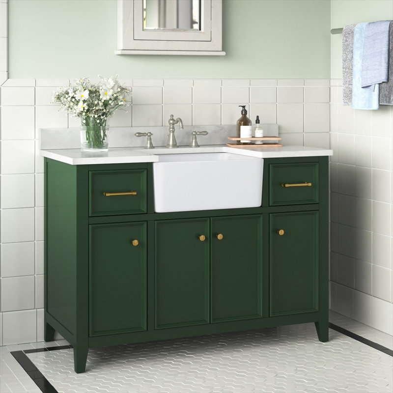 So happy with this vanity. This is the second vanity I bought through Wayfair and am happy with both. The color is so pretty and the counter and sink great quality.