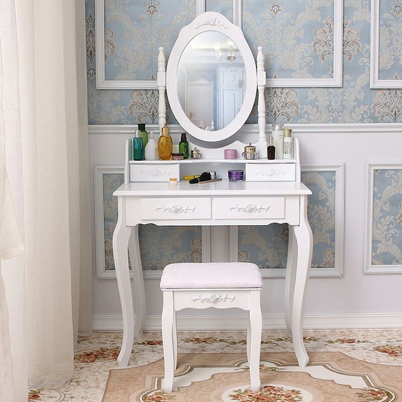 The top part of the dressing table can be moved away, so you also can use it as a writing table