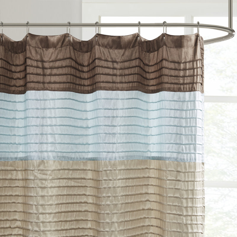 This shower curtain helps keep water inside your shower or tub while adding a stylish look to bathrooms of all sizes. It’s crafted from a faux silk fabric with a natural light sheen, and it comes in a tricolor striped pattern of your choice for a sleek modern feel. Twelve stitch-reinforced hook holes make it easy to hang over a shower rod with the hooks of your choice (rod and hooks sold separately). When it needs a refresh, it’s easy to clean in the washing machine. We recommend pairing this curtain with a liner (not included).