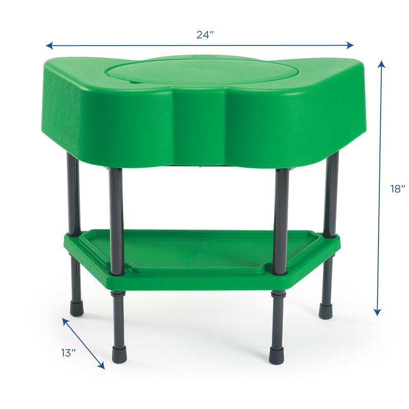 Fun-shaped sensory tables can be configured in a row for individual play or a circle for community play. Sensory Tables feature a durable plastic table and lid and a convenient lower shelf for supplies. Sturdy steel stands are adjustable from 18-24h. Assembly is required.