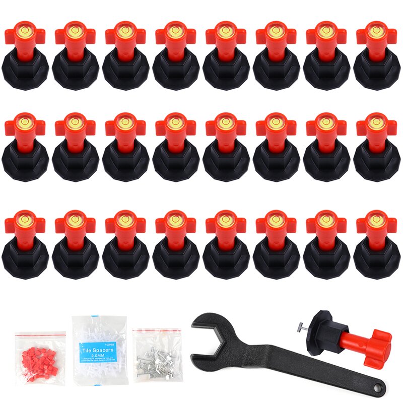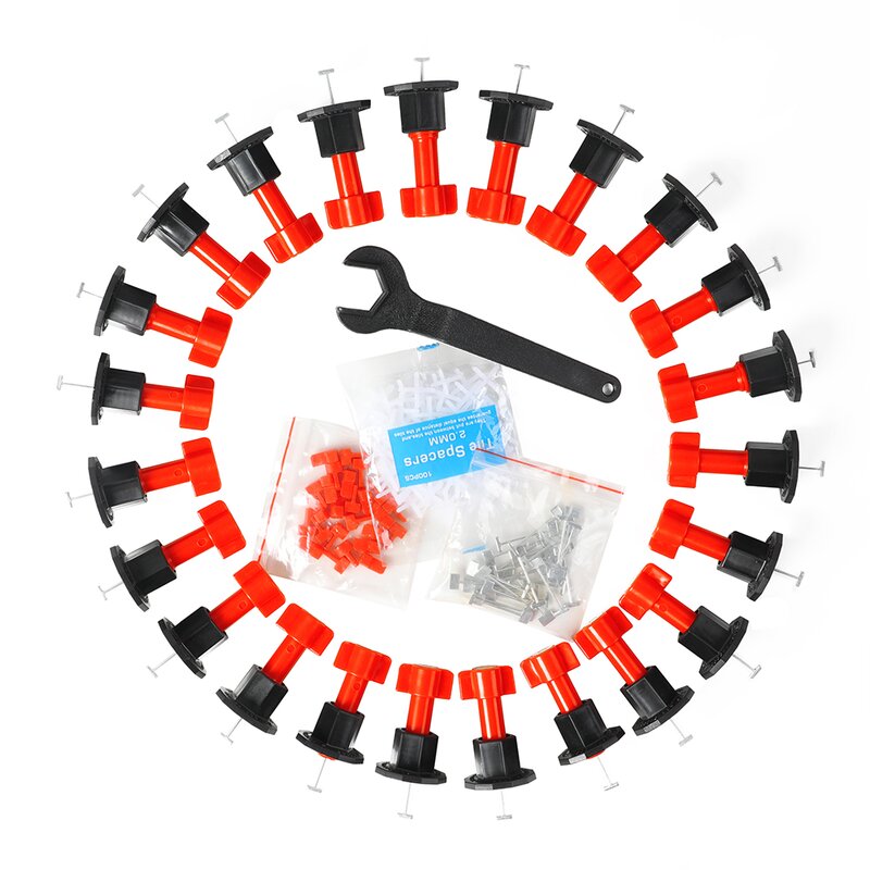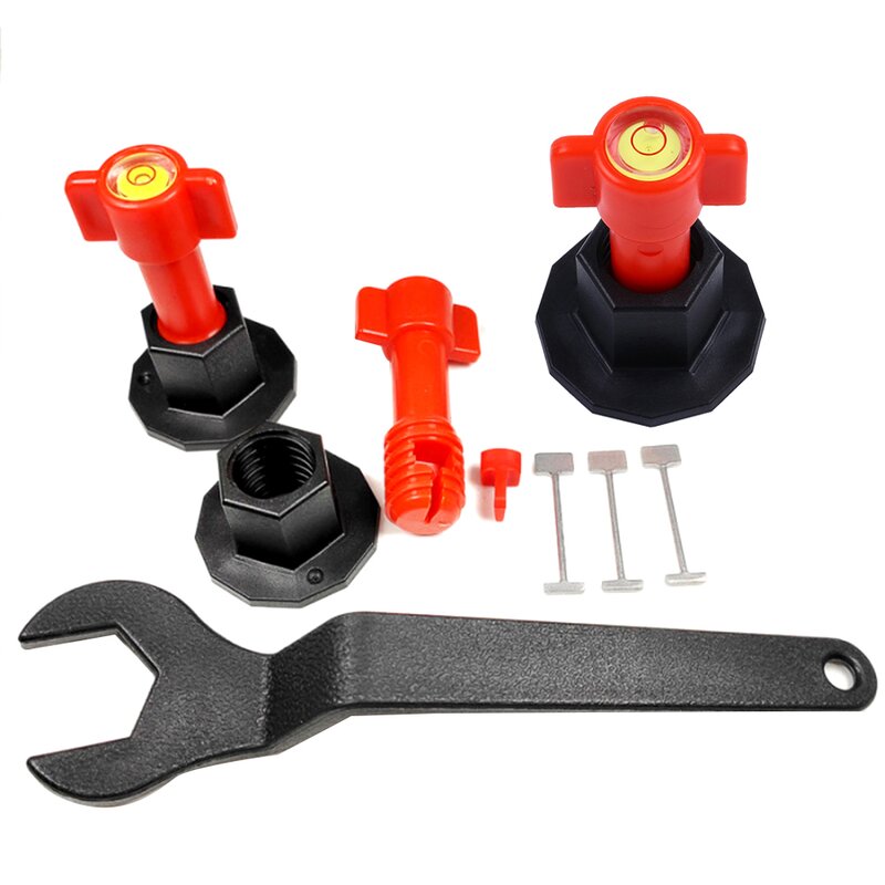 Reusable tile installation tool kit for construction, like building walls & floors. This tile leveling system is reusable, and it is easy enough to fix or remove with a special wrench. The steel needle of the straightening machine can be disassembled and recycled. When the steel needle breaks, the matching steel needle can be replaced. The tile leveler spacers are very easy to set up for both DIY-er and professional tile layers, with the included special wrench, which increases the efficiency of laying tiles. Very useful and reusable floor tile leveler tools. Virtually slippage free, flat surface drastically. Prevent tiles from moving while curing. Great for both floor leveling and wall leveling.