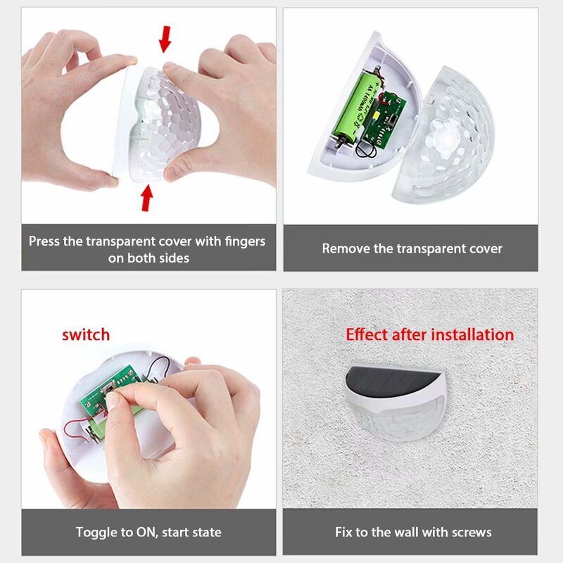 These high-quality solar fence lights come equipped with a rechargeable battery (included) and built-in, high-brightness LED lights. They can be fully charged after absorbing 6 to 8 hours of solar energy during the day and can keep areas well-lit for up to 7 hours throughout the night.