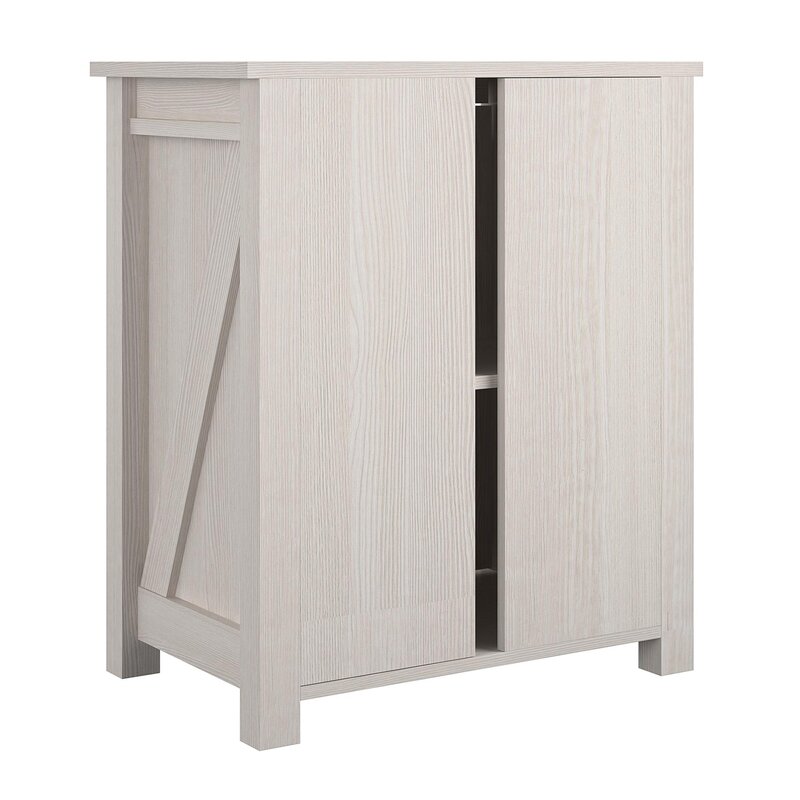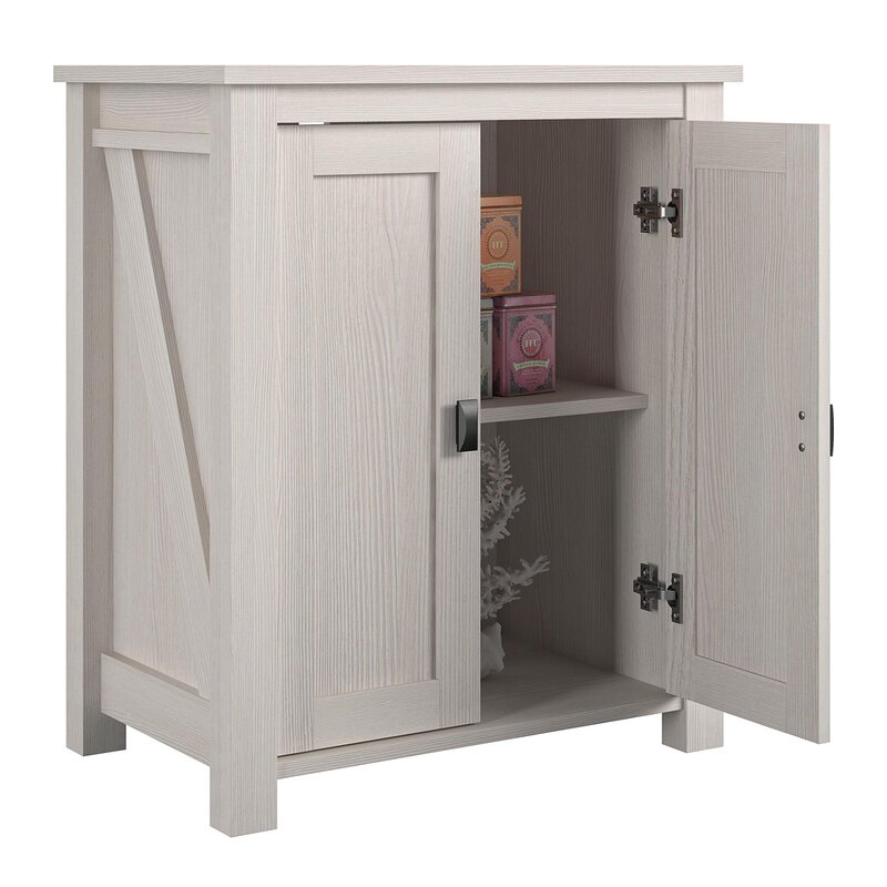Easy to build and feels solid. Door hinges are adjustable which helps getting them to fit just right. Only complaint is the knobs are a little off but not too bad.