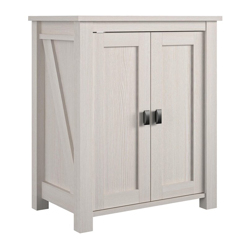 This wooden aquarium stand showcases your fishy friends with ample storage. Measuring 26.7” wide, and 15.7” deep, it holds tanks between 10 and 20 gallons (sold separately). The two cabinet doors have clean lines with classic picture frame molding – inside, two shelves provide hidden space for food, nets, and cleaning supplies. The back panel is open so it’s easier to attach tank accessories. This aquarium stank comes in a neutral tone that goes with any color scheme and streamlines your space.