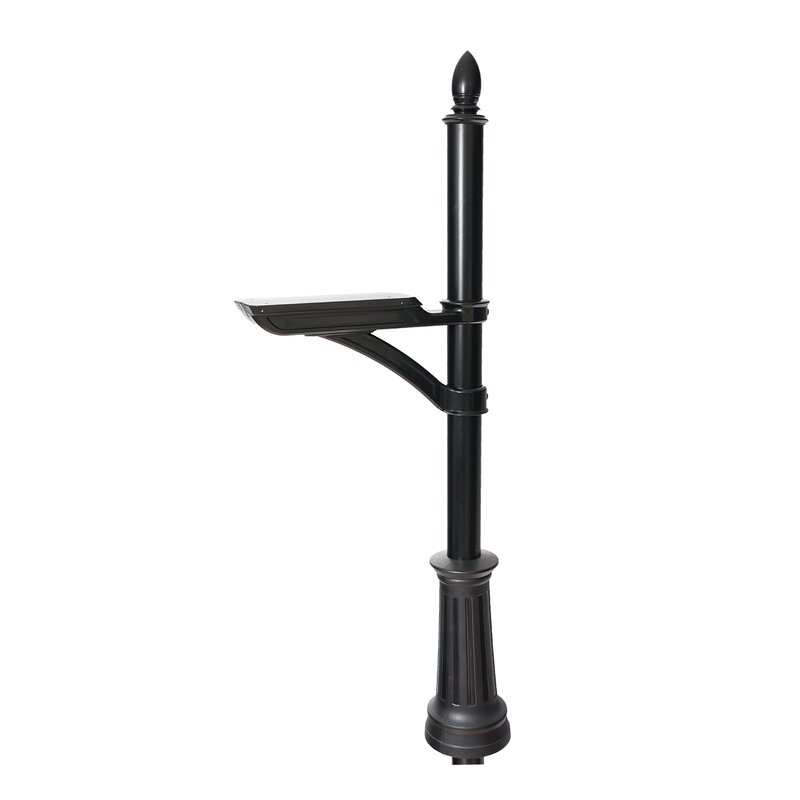 The decorative in-ground post can support most mailboxes weighing up to 50 lbs. Made from cast aluminum, galvanized steel and then fully powder coated for added durability and corrosion resistance. This post offers a beautiful design with highly functional elements such as a telescoping arm that can be raised and lowered and also rotated 360 degrees. To finish this design it comes complete with a molded ABS fluted base to cover and protect the post from weed whackers and hide any unsightly concrete.