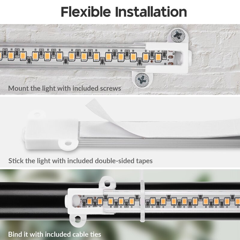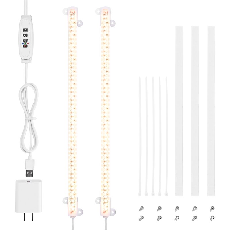 Features: – 2-Strip Warm White LED Grow Light Strip features 96 LED chips with wavelengths from 380 nm to 780 nm to provide full spectrum light, offering sufficient sun-like lighting to improve your plants’ photosynthesis and better growth – Features 10 brightness levels and electrodeless dimming to offer various brightness to meet lighting requirements of your plants at different stages, promoting better growth and avoiding burning your plants; You can control 2 lights at the same time or control 1 light to offer different illumination and lighting coverage- With circular memory timer function for 3/9/12 hours, automatically turns on/off everyday according to your setting, so it can take good care of your plants whatever you are at busy work or on vacation – With 5 cable ties for binding it on the flower shelf or growing shelf; With 3 double-sided tapes for sticking it to the table or growing cabinets; With 10 screws for mounting it to the wall; You can choose the suitable installation way depending on different places- Features energy-saving LED lights for long time use and water-resistance, no worry about splashing water; USB plug with power adapter for convenient power supply; 1 year replacement warranty for quality insurance