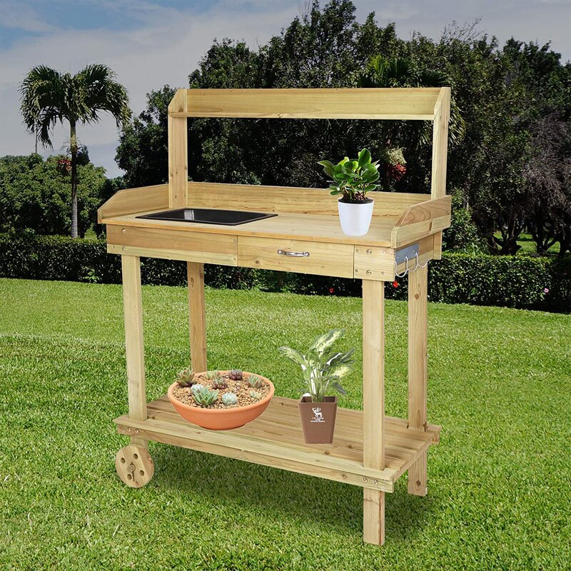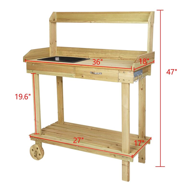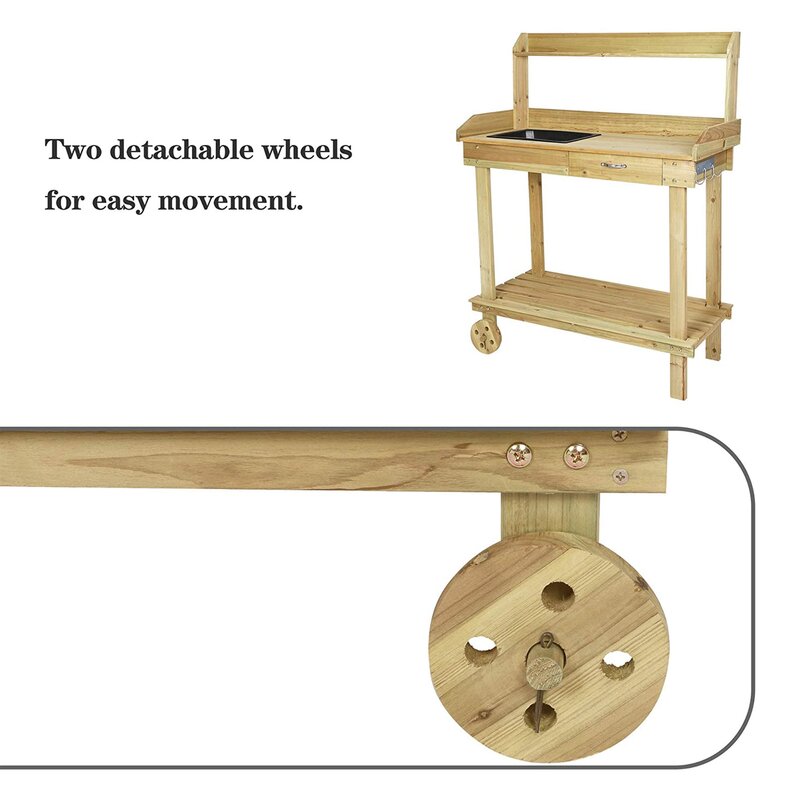 Materials | Made of solid wood,no harmful substances,sturdy and durable.All weather resistant potting bench suitable for outdoor garden.