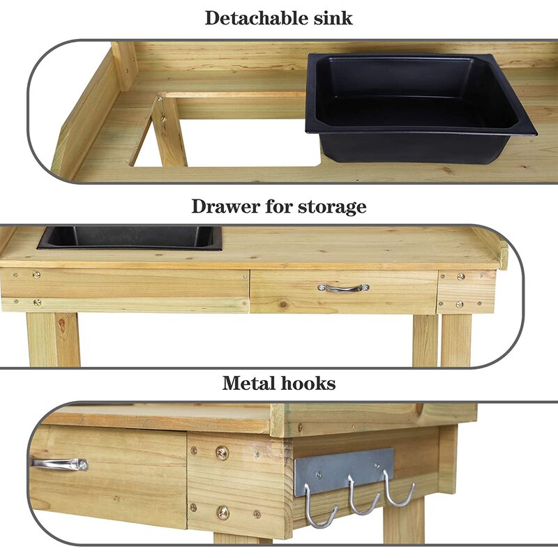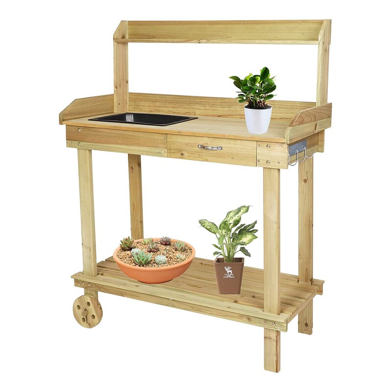 Reasonable Design | The tabletop with a removable plastic sink for easy watering and cleaning,side Hooks for hanging gardening tools.