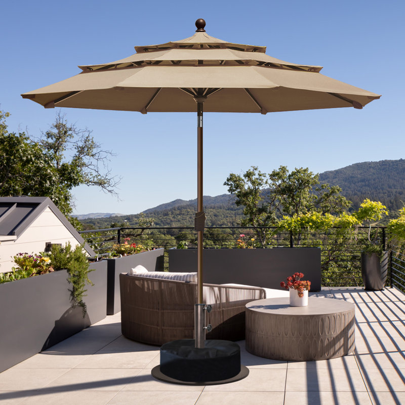The base is very attractive and sturdy. I have yet to fill the sand bag, but if you were wondering, it is necessary. The umbrella has tipped a few times already.