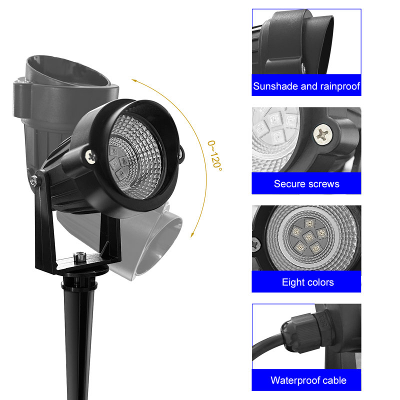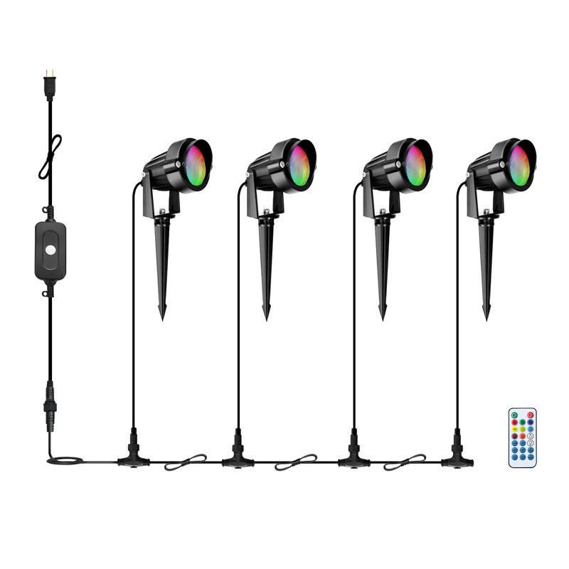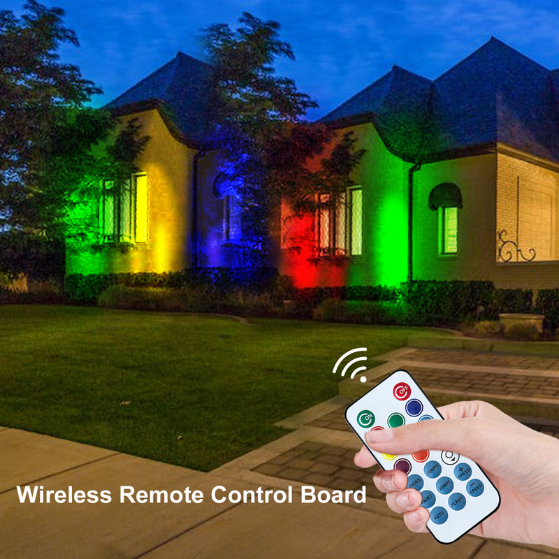 This 4-in-1 15 ft outdoor RGB landscape spotlight is a perfect additional decoration to your backyard. With IP65-grade waterproof and sturdy material, these spotlights will still function normally during bad weather. These color-changing spotlights include 8 different colors choice and 6 lighting modes to meet your daily needs and serve as decoration during the holidays. The light modes and the colors can be changed by using the remote or clicking the adapter button. These spotlights can be used to decorate your walkway, illuminate doors, and alongside a path or tree. These handy spotlights can also serve as visual markers for your mailbox at night. These lights also add extra security to your home by illuminating the exterior, allowing you to feel safer than ever!
