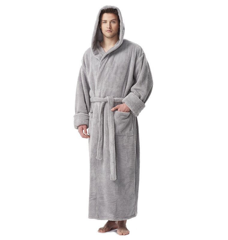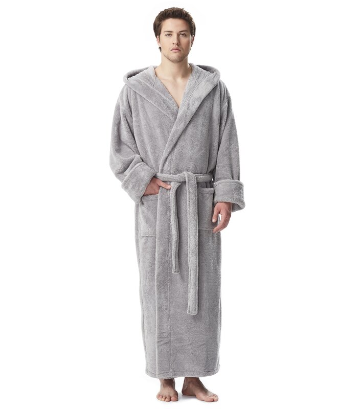 The Alec Fleece Bathrobe made of high-quality material. Length up to 59 inches, this is a true ankle long robe. This hooded robe is designed for customers looking for softness and comfort. Cozy and warm, it is perfect for lounging at home, taking an afternoon nap or walking around the house. High-quality Turkish fleece construction will make this a durable robe for many years. You will never want to take off this luxurious robe. This fleece robe is a perfect gift for any occasion.