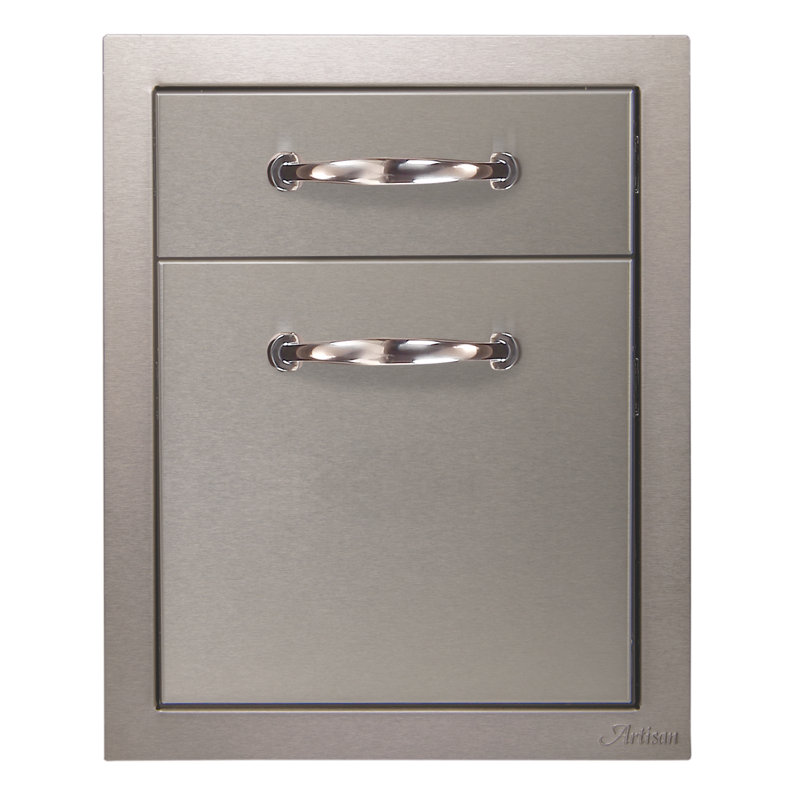 The Drawers is hands crafted in California with the utmost attention to detail. Drawer storage is essential for any outdoor kitchen. The double drawer system features full-length ball bearing glides for ease of use and longevity. Small drawer on top for grilling tools and larger drawer on the bottom for bulky items and grill cover.