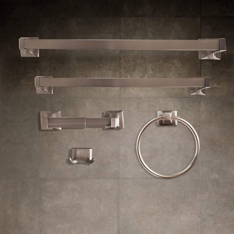 About this item. Made in Taiwan. The 5 piece bath ware brings the most efficient method to your life – matching looking and easy installation. Manual – easy installation manual is available to make your life easier. Screw-mount installation: Concealed screws are invisible to make the whole series look even more beautiful and neat. The product includes: 1 x 25.87″ Towel bar; 1 x 19.88″ towel bar; 1 x towel ring; 1 x standard toilet; paper holder 1 x robe hook; 8 x mounting packs; 1 x installation manual. Material: Zinc alloy with no regrind material. Mounting pack material: Steel material with a high-quality plating surface. Surface finish: Hand polished with high-quality plating process passing with 96hrs salt spray testing. Installation: Screw-mounted.
