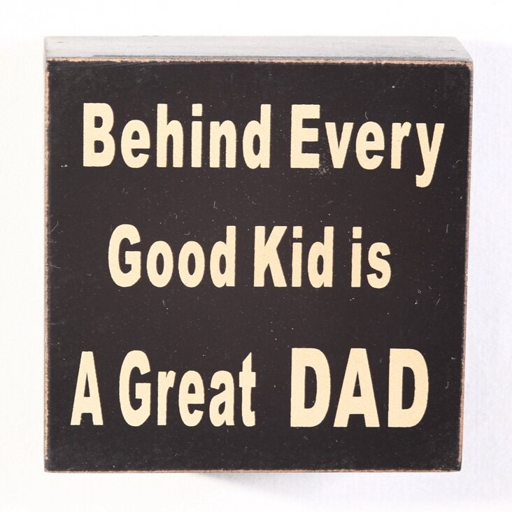 The antique wood sign reads “behind every good kid is a great dad”. Box style sign has a hook to use for hanging or can stand on a table or countertop. Great for father’s day and birthdays.