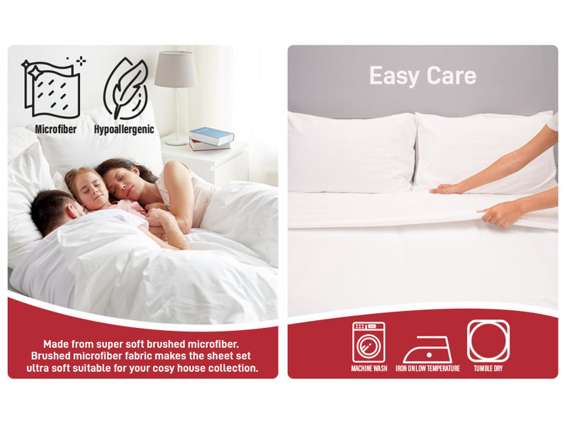 Hotel quality bedding sheet set queen – shrink and fade resistant fabric. Made from super soft brushed microfiber. Brushed microfiber fabric makes the sheet set ultra soft suitable for your cosy house collection.