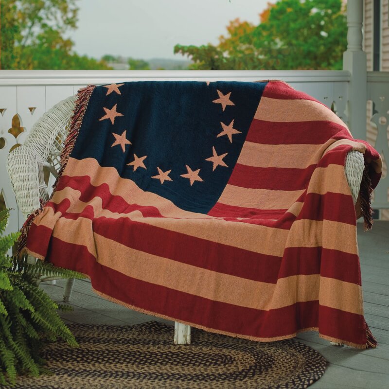 Curl up in our lightweight, vintage-style opia old glory American flag woven throw. This comfy 50×60 100% cotton throw features a red, white and blue American flag pattern to give patriotic appeal to any room in your home. The soft, woven texture brings chic charm while still adding a touch of elegance to any bed, sofa, or couch.