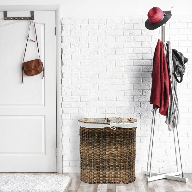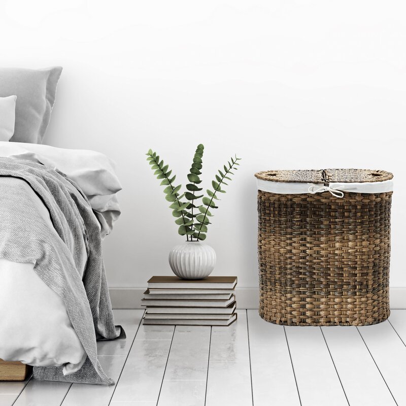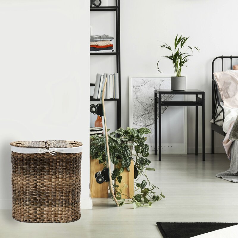Conceal-soiled linens and worn pieces in your wardrobe with this must-have laundry hamper. Made from steel, its rounded frame features a woven synthetic polyethylene design finished in brown for a classic appearance. This piece is lined with a canvas bag, which is removable and machine washable. A lift top allows you to hide what’s inside from plain sight.