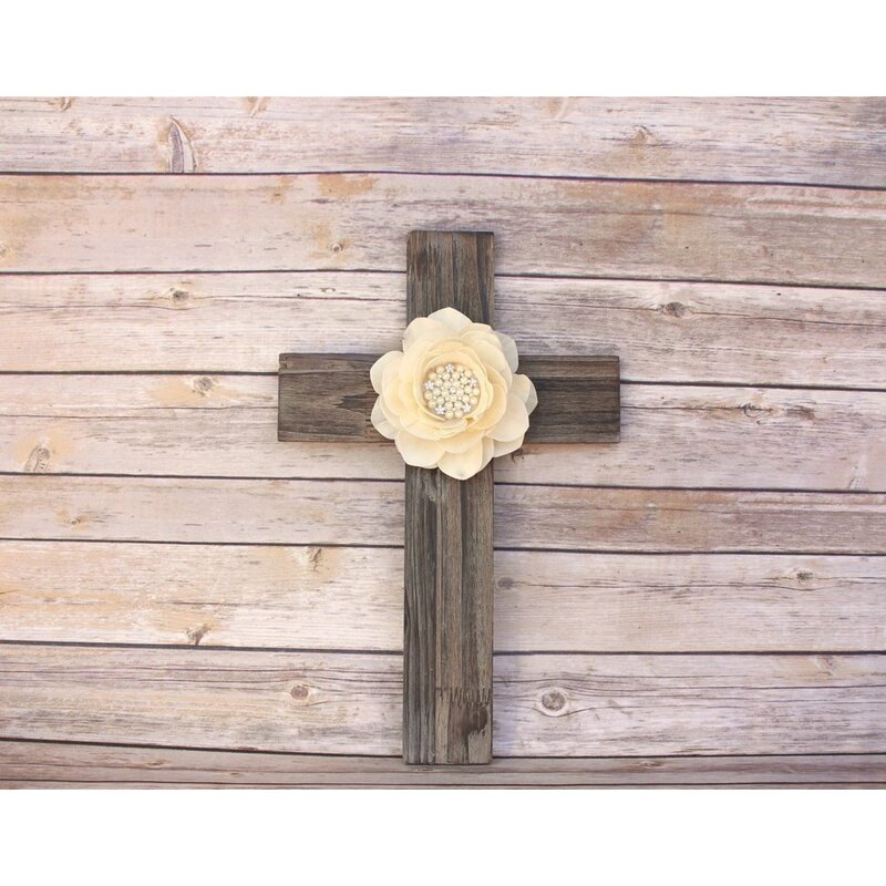 Decorate your wall with this wood cross to add a rustic touch to your home. Decorated with large sola wood flower in natural color in the middle.