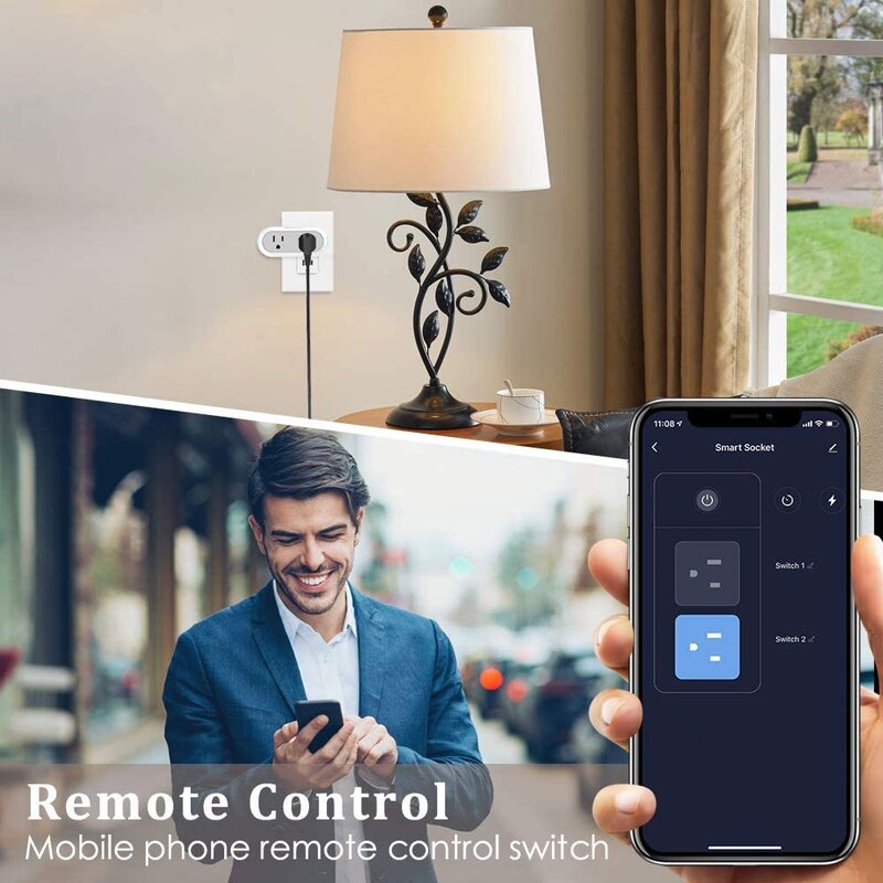 One plug equals two outlets: Dual smart home plug designed with 2 outlets and 2 switches, both outlets can be controlled individually or in the group, 2 in 1 compact space-saving design, takes over 1 year to design and update, practical improvement offers more convenience to your smart life
