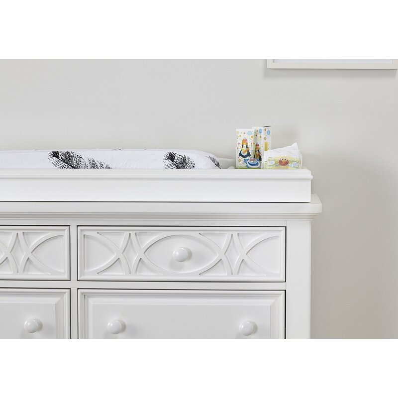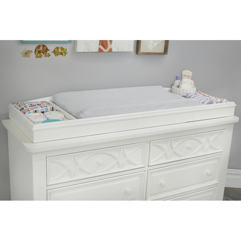 Once part of an exclusive Babies R Us nursery collection, This changing station sits on top of the dresser and fits the most changing table topper. Storage is key, with a side compartment to hold all necessary baby supplies and products.